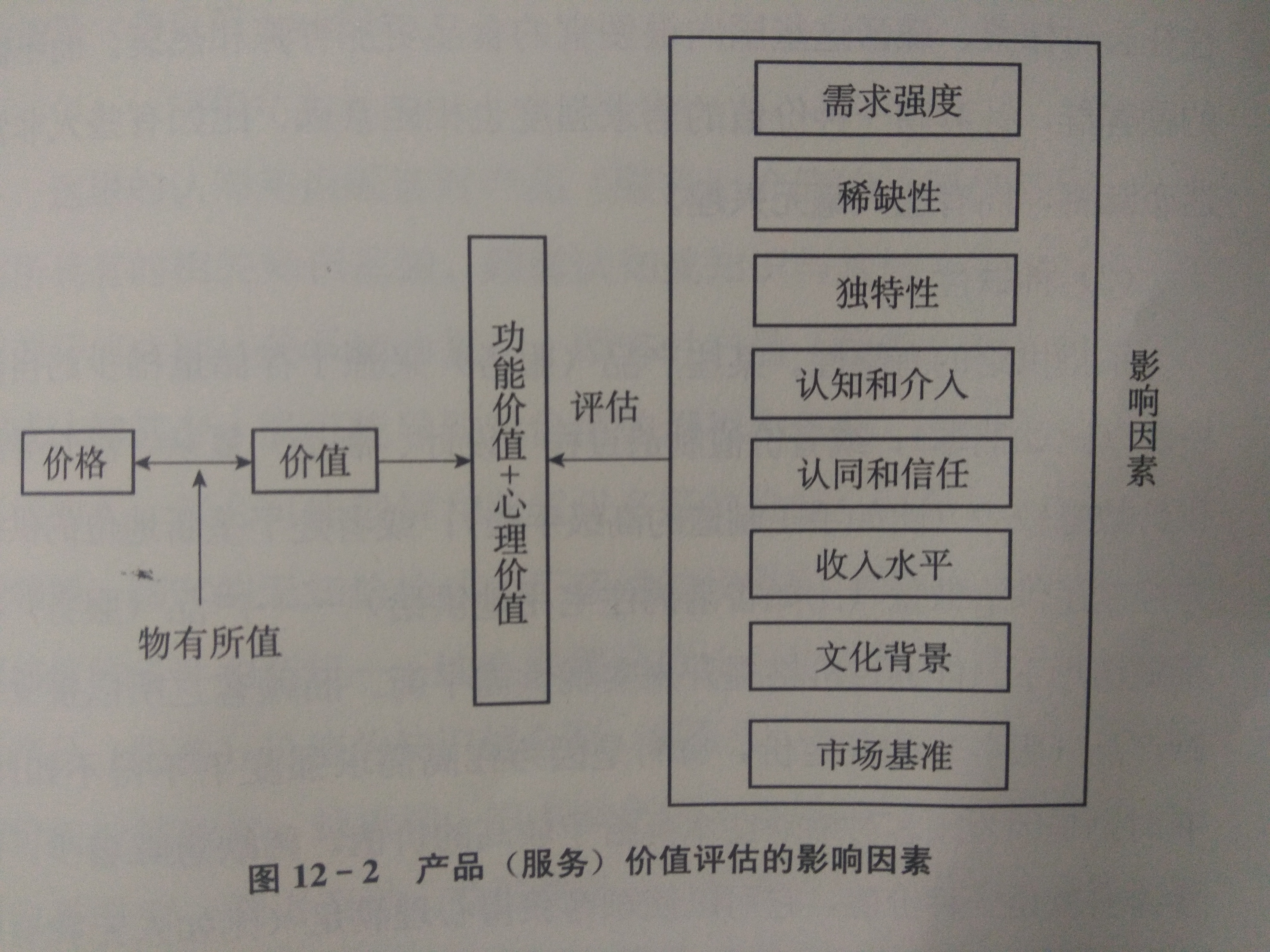读者朋友可能会问:顾客如何评估产品(服务)的价值?他们会考虑哪些变量?他们会受哪些因素影响?下面我们一一说明(见图12-2)。